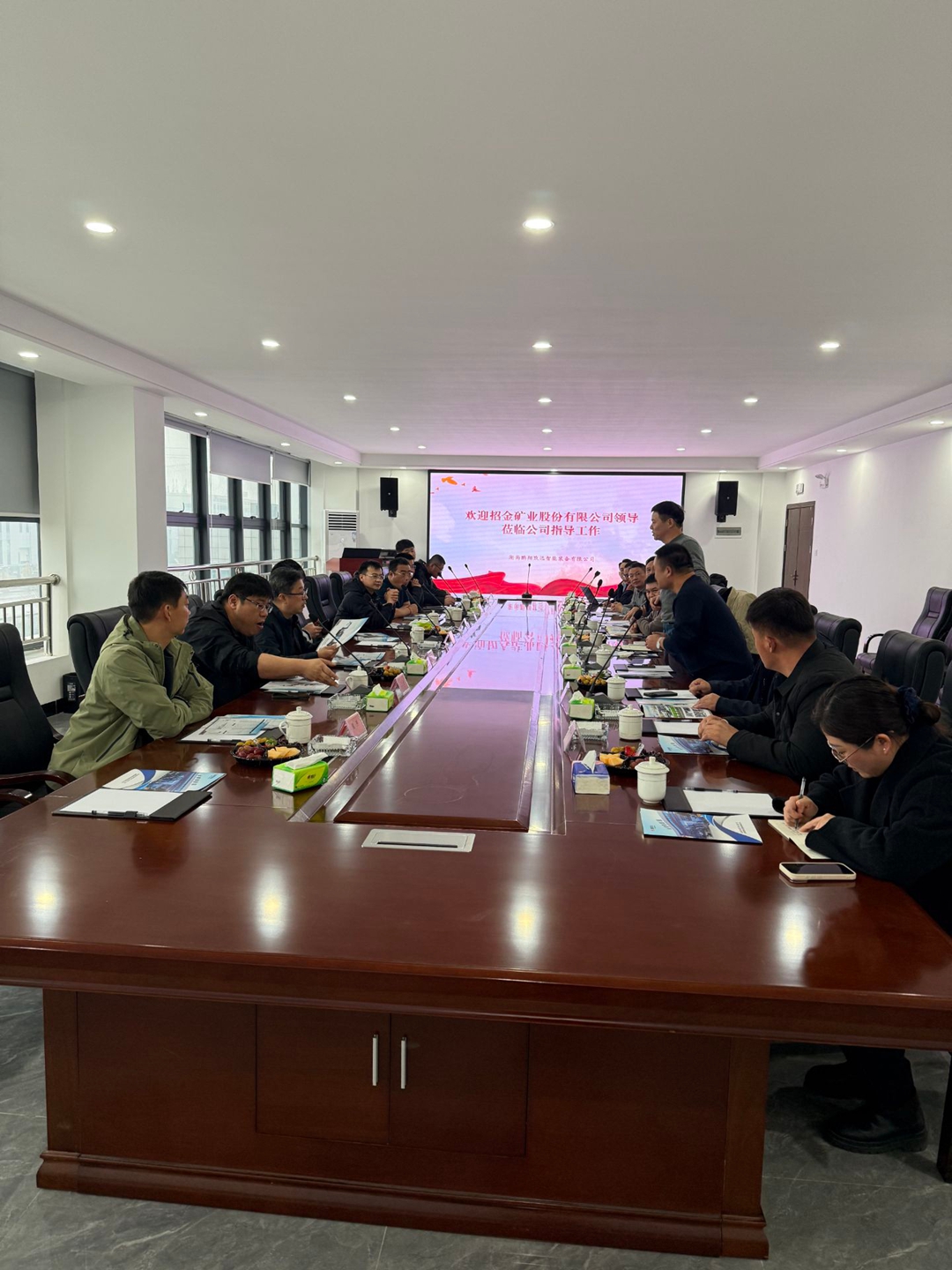 12月24日,招金矿业股份有限公司考察组一行莅临鹏翔智装,开展实地考察与技术交流。鹏翔智装董事长胡鹏填及团队对考察团的到来表示诚挚欢迎。