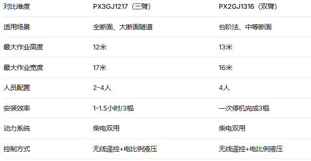 需匹配隧道断面尺寸:最大作业高度、水平覆盖宽度、最小转弯半径。城市地铁等狭小空间施工,紧凑型设计是关键。