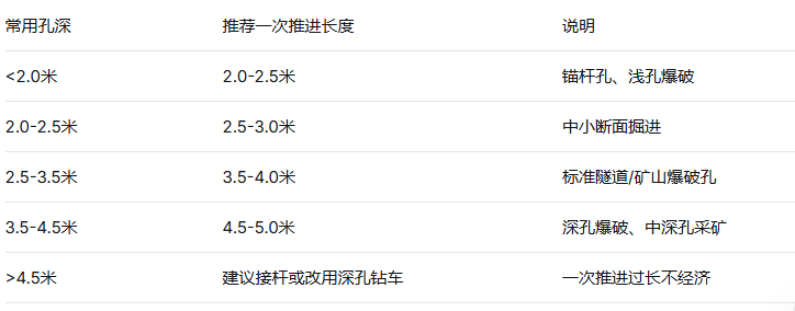 一次推进长度,就是凿岩机一次钻进、不需要接杆的最大行程。简单说:推进梁多长,一次就能打多深。